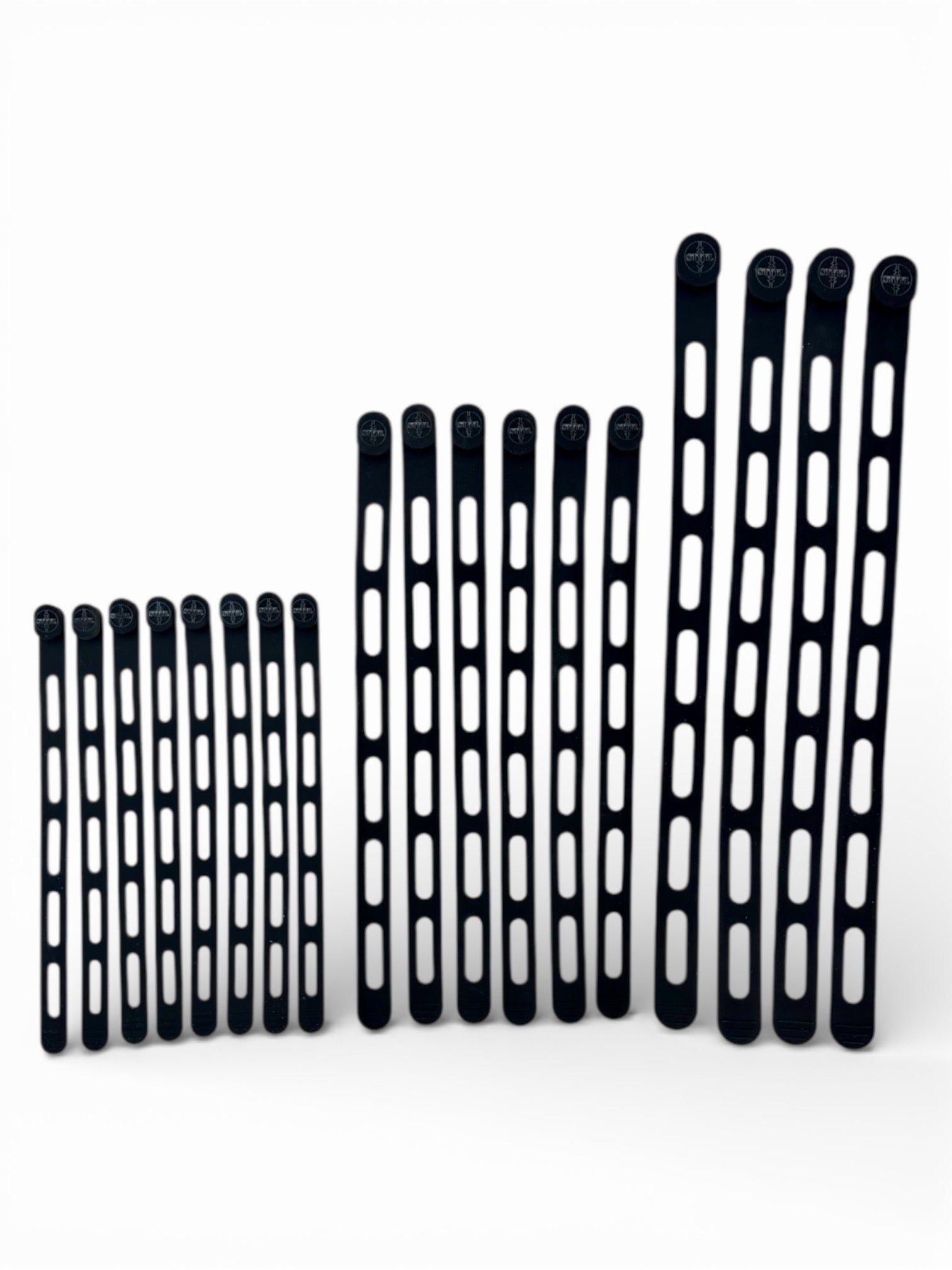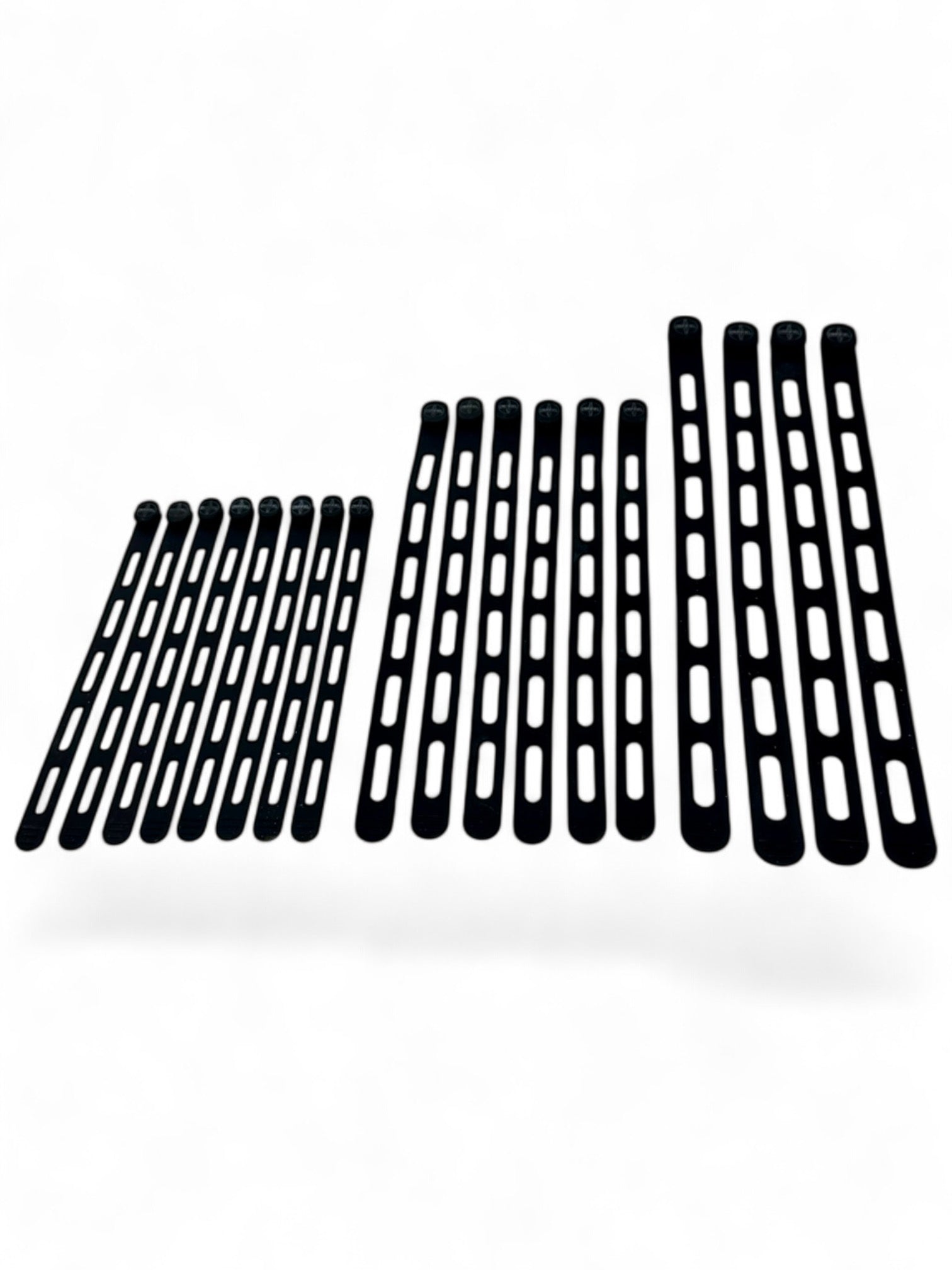 Gefertigt aus robustem, UV-resistentem Silikon, lassen sich die Bänder dehnen. Dank mehrerer Langlöcher und eines stabilen Silikonknopfs kannst du sie flexibel an verschiedene Durchmesser anpassen – von 2 cm bis ca. 30 cm (je nach Bandgröße)